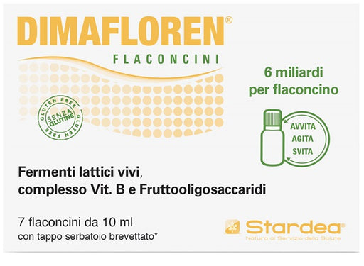 STARDEA SrlDIMAFLOREN Descrizione Integratore alimentare. DIMAFLOREN contiene fermenti lattici vivi e fruttooligosaccaridi che favoriscono l’equilibrio della...