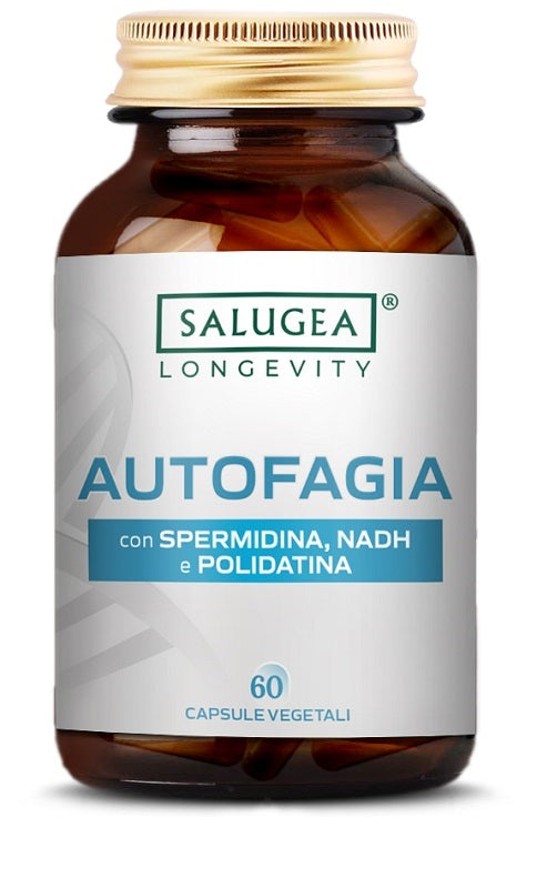 SALUGEASALUGEA LONGEVITY AUTOFAGIA DescrizioneIntegratore alimentare con spermidina, NADH e polidatina.Adatto a vegetariani. IngredientiEstratto di germ...